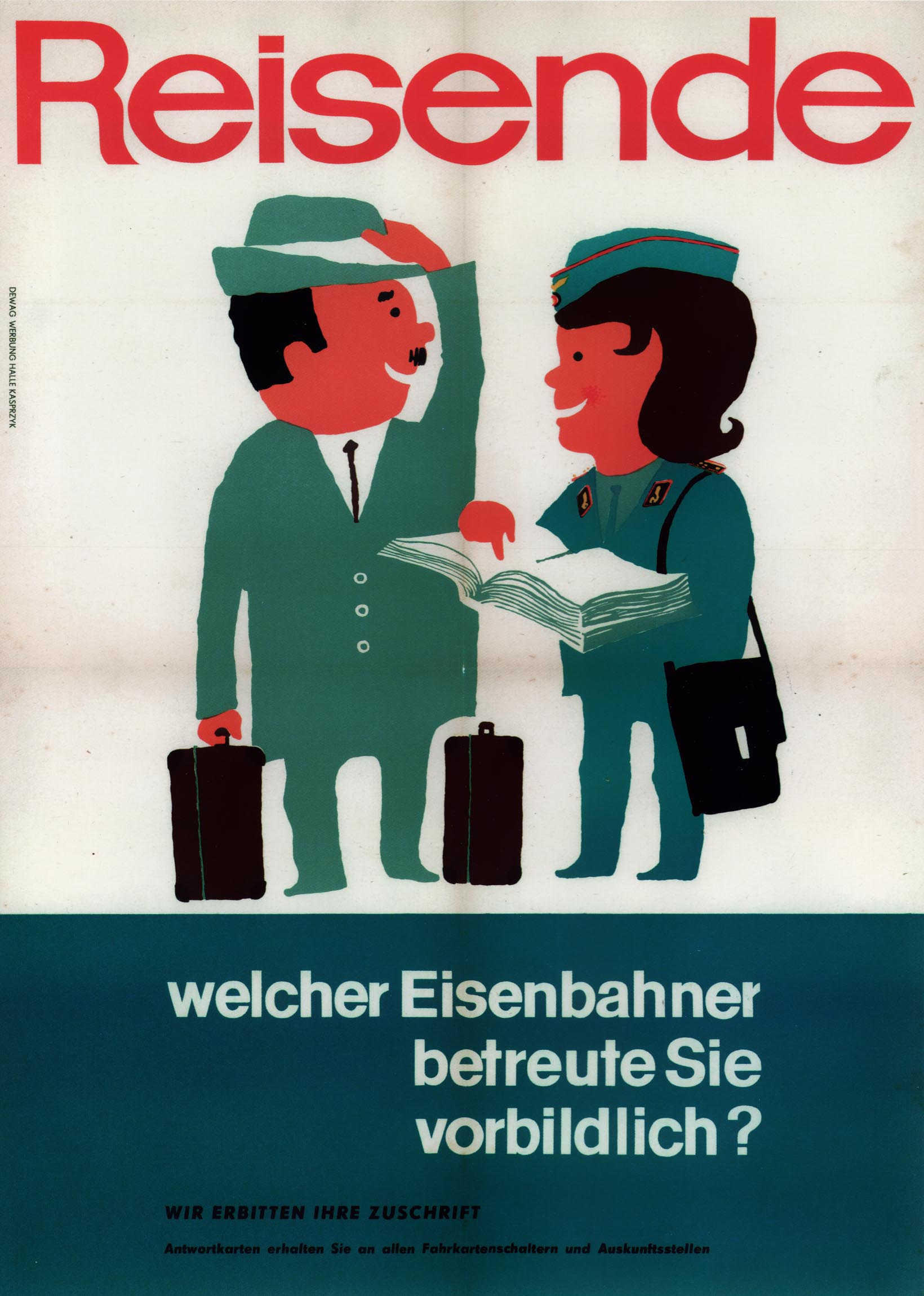 Advertising was also used by the GDR's railways, called Deutsche Reichsbahn (DR), to promote new timetables, discounts, vacancies or tourism. Here too, posters mainly created the illusion that there was a lot to choose from. Foreign destinations were limited: most people were only allowed to travel within the Eastern Bloc. The GDR did welcome Western transit passengers because they brought in foreign currency. Generally, the designs of railway posters were on par with those in the West.